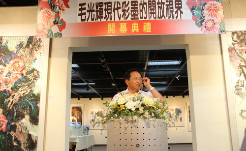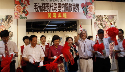 本网讯(谷遇春)应台湾新竹美术协会的邀请,7月6日至10日,我校美术学院教授、著名画家毛光辉先生在台湾新竹县文化馆举办题为“流光溢彩的生命交响”现代彩墨画展。我校工会主席、副校级督导田国祥,校友会秘书长李荣光,湘西州文艺研究所所长田特平,台湾新竹县县长邱镜淳、副县长章仁香、文化局局长郭慧龙等出席了画展开幕式。