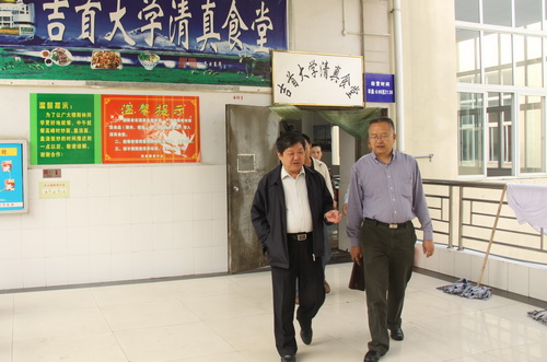 图为 廖湘生、陈文新一行考察校区清真食堂