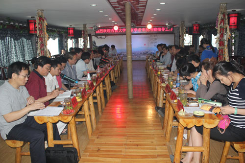 到达沅陵后,考察组成员与沅陵县委、县政府主要领导及部分职能部门领导进行了座谈。座谈会上,沅陵县委常委舒由华代表沅陵县委从基本县情、经济社会发展情况、“十二五”发展目标和措施等三个方面做了汇报。我校李汉林、钟飞、暨爱民、向昌国、瞿建慧等专家教授先后在座谈会上发言,双方就沅陵县的历史文化与旅游资源的挖掘、利用与开发,旅游宣传与策划,濒危语言的抢救,沅陵山歌、传统龙舟和辰州傩戏等非物质文化遗产的保护等方面进行了广泛而又深入地交流。